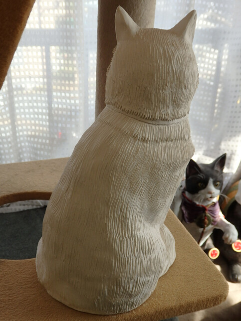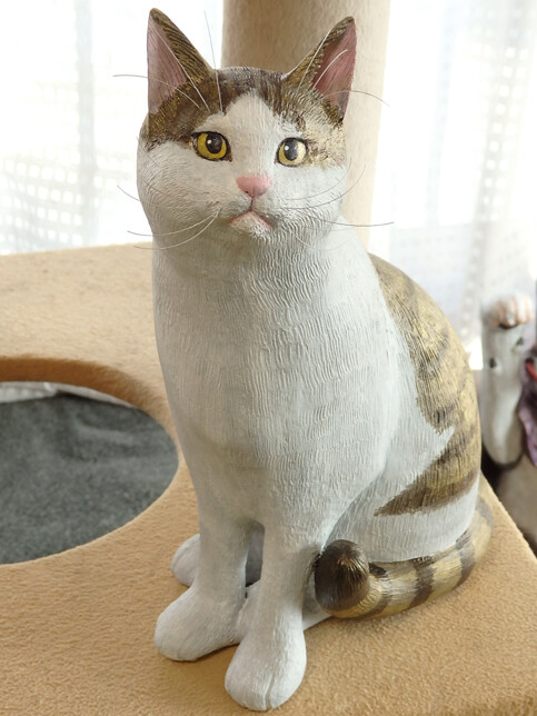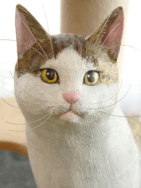 チップさん彫刻制作・22 2021年11月01日 カテゴリ:彫刻制作 今日の、チップさん彫刻制作です。引き続き、色塗りです。しばらく、顔の細かな造形を修正していますが、今日仕上げが完了して…色塗りしてみました。この表情は、だいぶチップさんに近づいてきたと思います!キジトラ模様も、描き始めました。全体の雰囲気も、チップさんに近づいてきていますよ!
