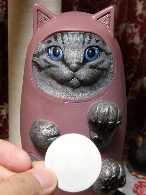 だるまねきねこ、ひげの取り扱いには
