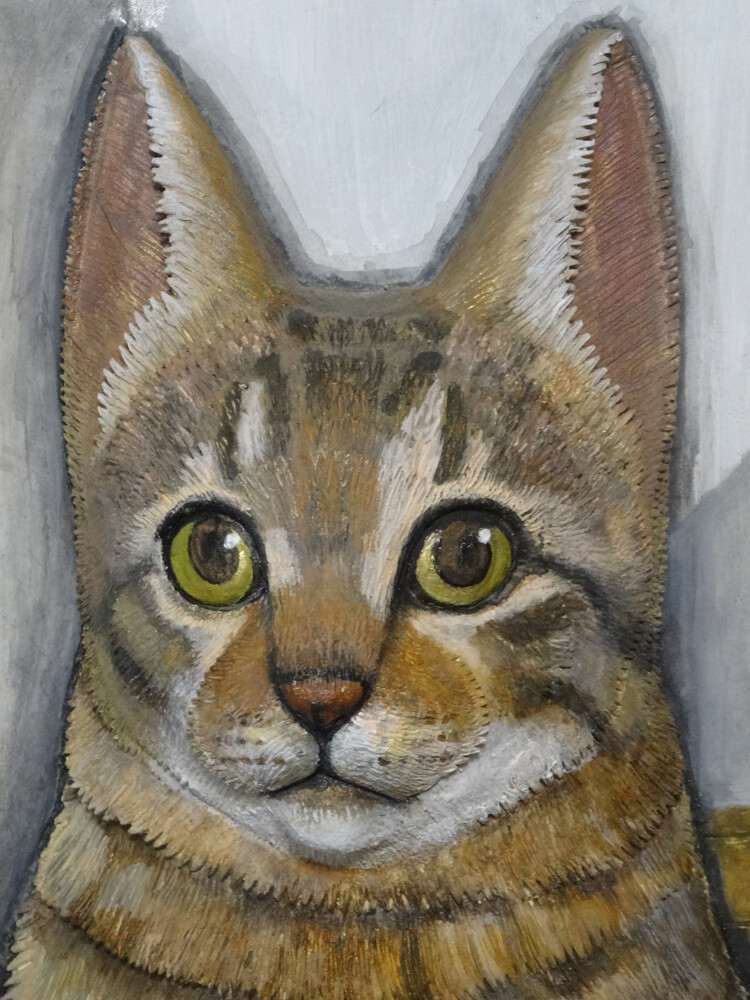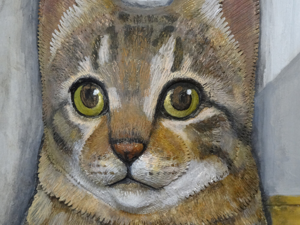 りお君額縁彫刻制作・109 2022年08月30日 カテゴリ:彫刻制作 今日の、りお君額縁彫刻制作です。引き続き、表情の修正を。昨日より、だいぶかわいくなってきましたが…あ、黒目がちょっと茶色すぎましたね。もう少し色を調整しないと。黄色の部分も、もう少し影や光の反射を描き込もうと思います。全体の印象、ちょっと影が強いかも…?半立体なので、壁に掛けたときに室内等の光が当たって影ができたときにさらに濃くなっちゃう可能性がありそうです。もう少し、薄めにしておいた方が良いような気がします。