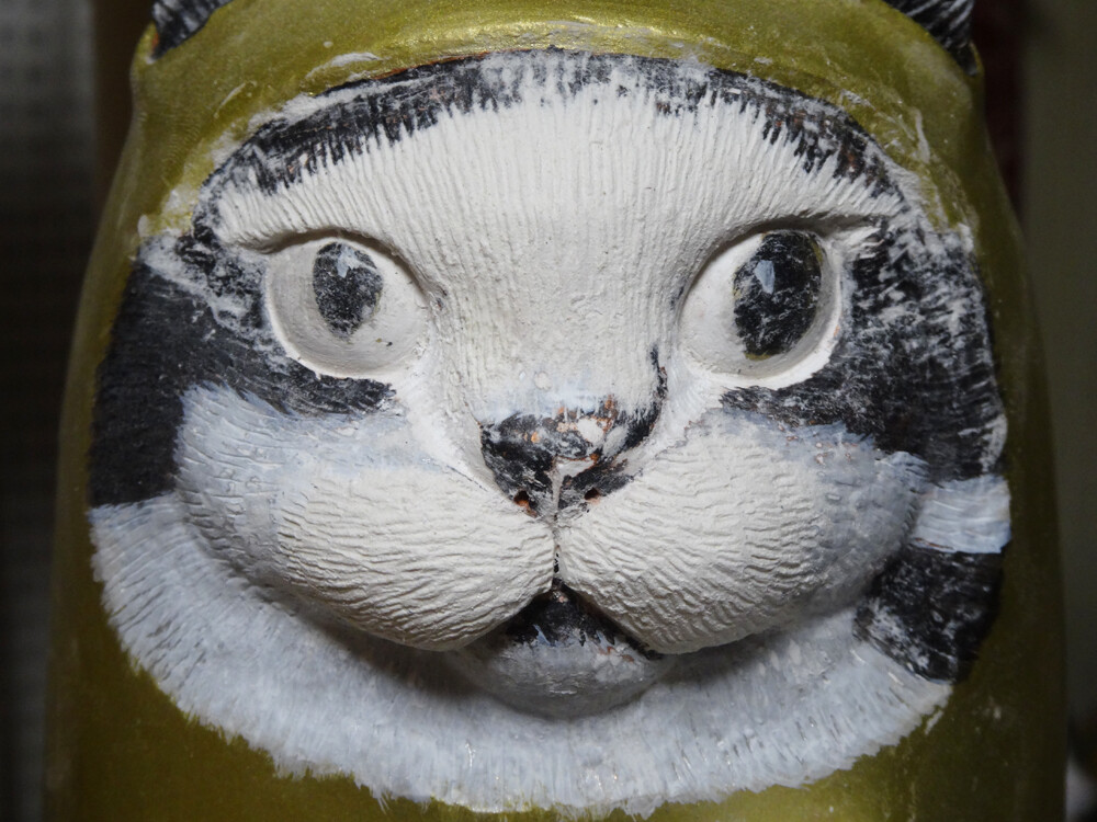 小町ぱんだるまねきねこ&いぬ制作・26 2022年08月30日 カテゴリ:彫刻制作 今日の、小町さんだるまねきねこ&アナベルさんだるまねきいぬ制作です。小町さんのお顔を…造形から修正です。目元を少しシャープにして口の周りを、少しぷっくりと。粘土が乾いたら、削って形を整えつつ、毛並みを彫りますよ!