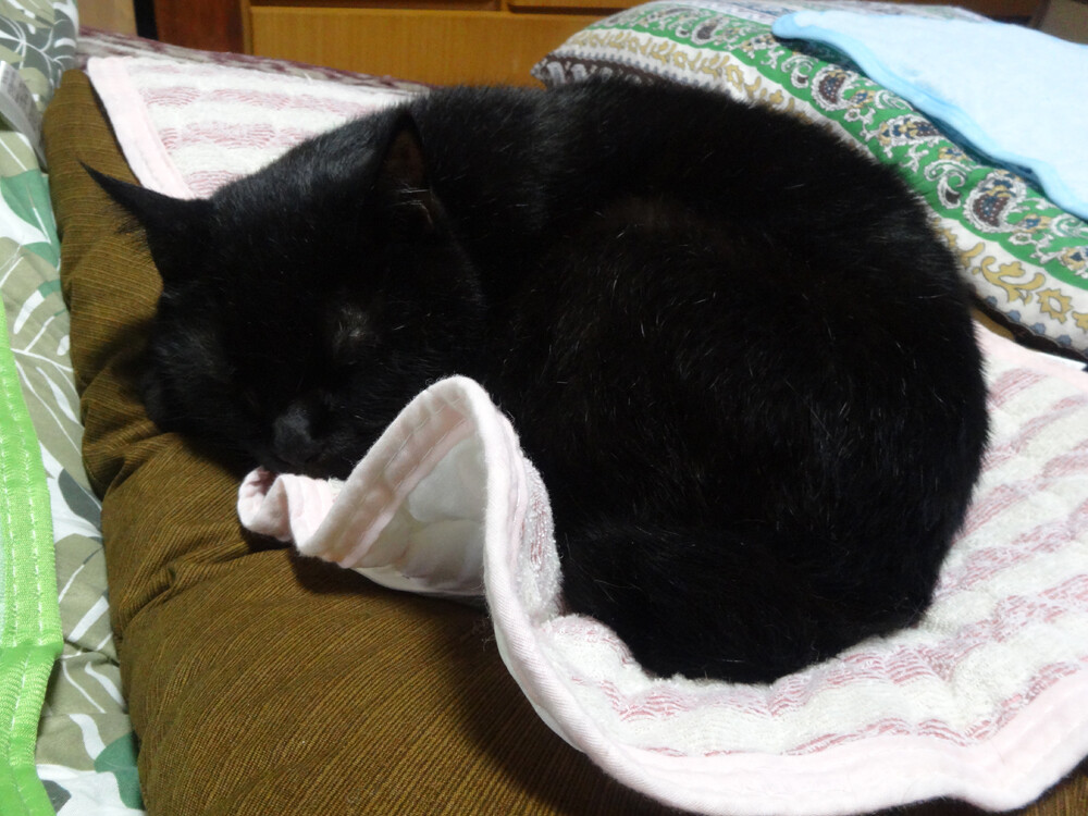のらみゃん14泊15日目 2022年08月31日 カテゴリ:のら3ゃん 体調不良で入院中の、しろくろさん今日で、14泊15日目です。今日からまた、動物病院再開ですのでまずは電話連絡して、状況を確認しようと思います。新しく処方された薬が上手く効いていればいいのですが。排泄ができることは確認できていますので嘔吐せずに消化できるようになれば自宅療養に移行できる気がします。気温も、引き続き落ち着いていますのでここががんばりどころですね!ここ数日は、朝晩が涼しいので深夜の大運動会が盛り上がってます。なので、朝起きると…くろねえさん、今日もゴロン。毎晩、あかるちゃんのお相手お疲れ様です。くろねえさんが、がんばってくれているので…今日は、あかるちゃんも疲れて寝てますね。あ、起きなくて大丈夫ですよ。ごゆっくりどうぞ。