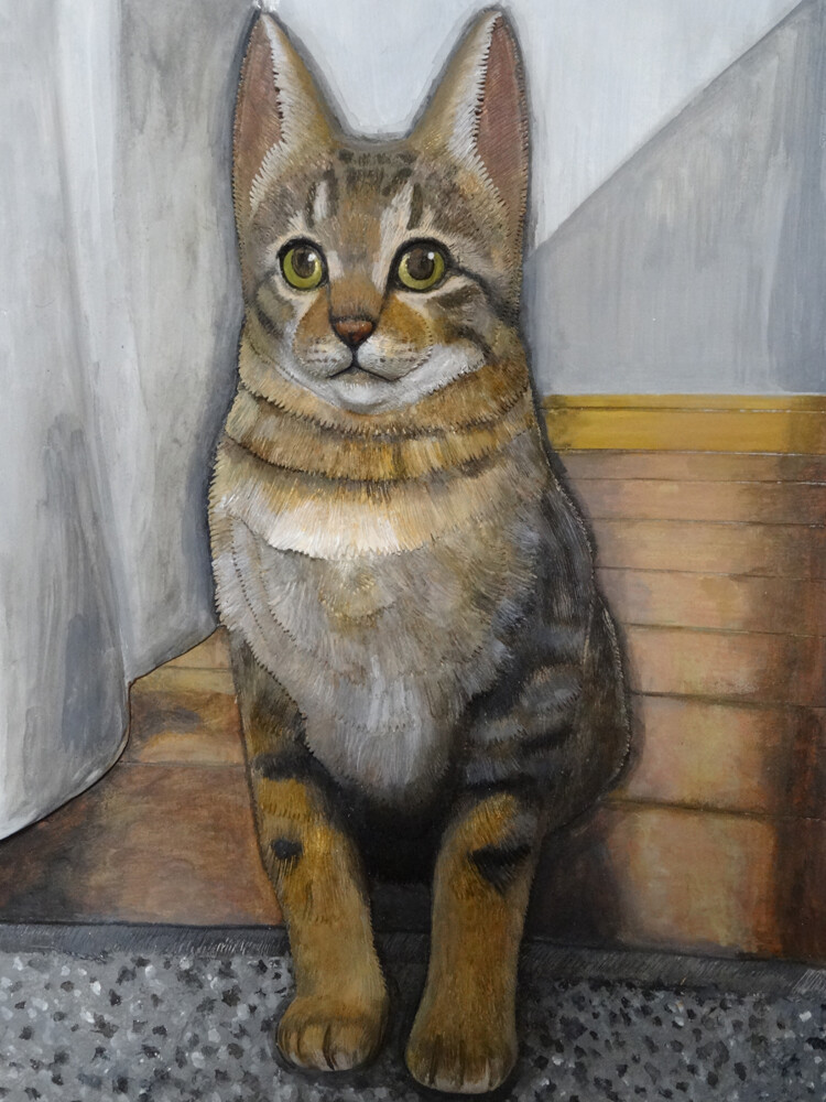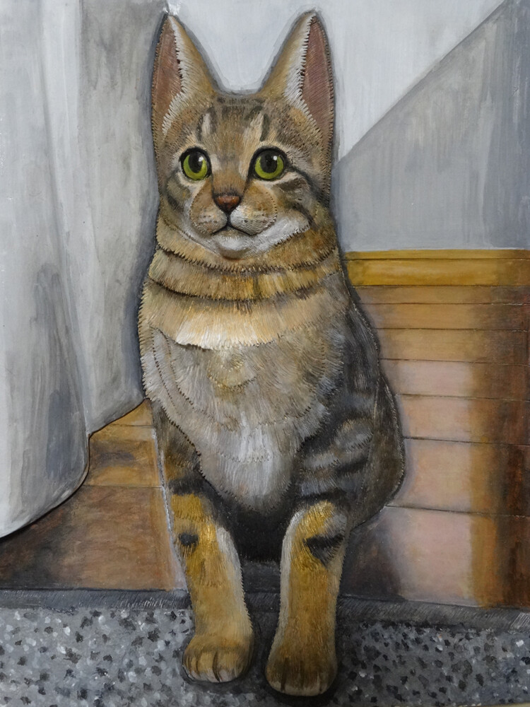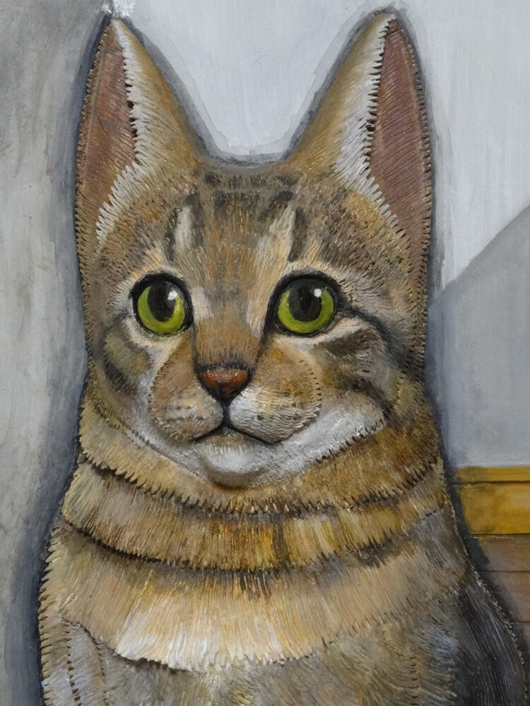 りお君額縁彫刻制作・110 2022年08月31日 カテゴリ:彫刻制作 今日の、りお君額縁彫刻です。引き続き、りお君の表情や全体の色合いを修正です。昨日より、良くなってきていますがお目々、ちょっと黄緑が強すぎだ。実物と写真の印象がちょっと違いますがもう少し、色の調整をしてみます。床や、光が反射している部分の色合いを、全体的に明るく再調整です。この上から、実際に光が当たることを考えるとこのくらい、明るめの方がよさそうです。カーテンの色も、もう少し明るく影少なめに調整しようと思います。