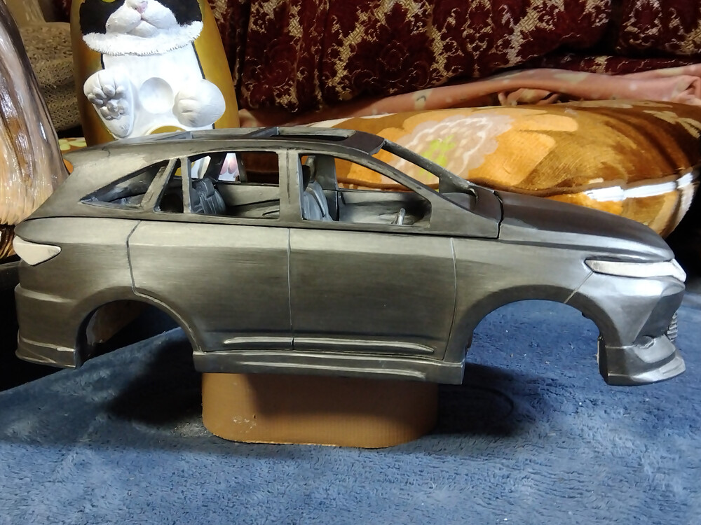 ハリアー彫刻制作・842 2026年03月09日 カテゴリ:彫刻制作 今日の、ハリアー彫刻制作です。運転席側Aピラーが…ボンネットに繋がるラインを滑らかに修正しつつ…助手席側リアフェンダー周りの屋根とボディの合わせ目も修正し始めました。粘土が乾いてから削って下地色を塗り直したら…良くなってきました。助手席側リアフェンダーも造形が滑らかに、隙間最小限になったと思います。さらに、助手席側の隙間調整を進めます。 「彫刻制作」カテゴリの最新記事 コメントする コメントフォーム 名前 コメント 記事の評価 リセット リセット 顔 星 情報を記憶 コメントを投稿する