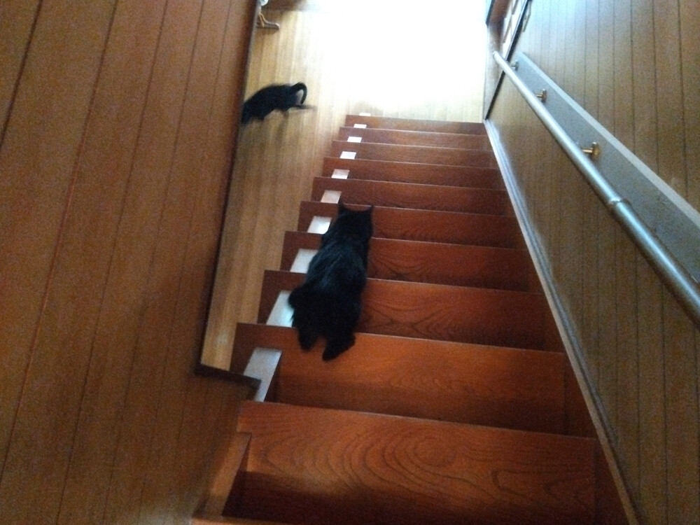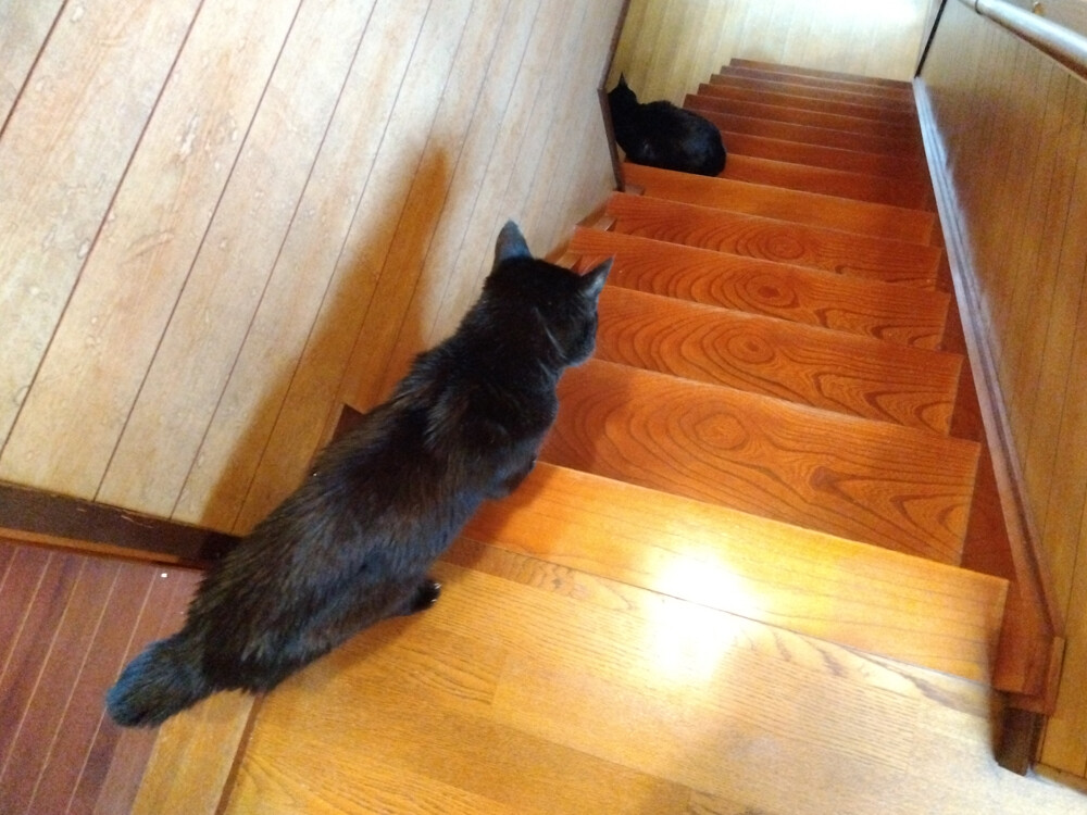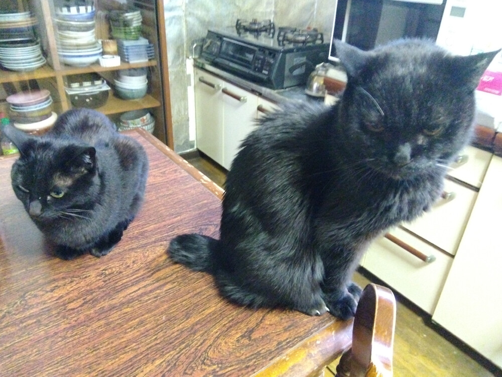 のらみゃんもうそろそろ雨? 2026年04月10日 カテゴリ:のら3ゃん 今日は、朝から空がどんよりしています。黒女子おふたりは…おふたりでご一緒に二度目の朝ご飯を食べるそう。5時起きなのでお腹がすきますね。あかるちゃん階段降りるのが速いです。ガッツリご飯を食べ終わった後は…あ、おふたりとも写真、撮らせてくれるんですね。黒目の大きな、あかるちゃん。凛としてカッコいいくろねえさん。お目々、キリッとして迫力がありますね!もう少しで雨、降ってきそう。