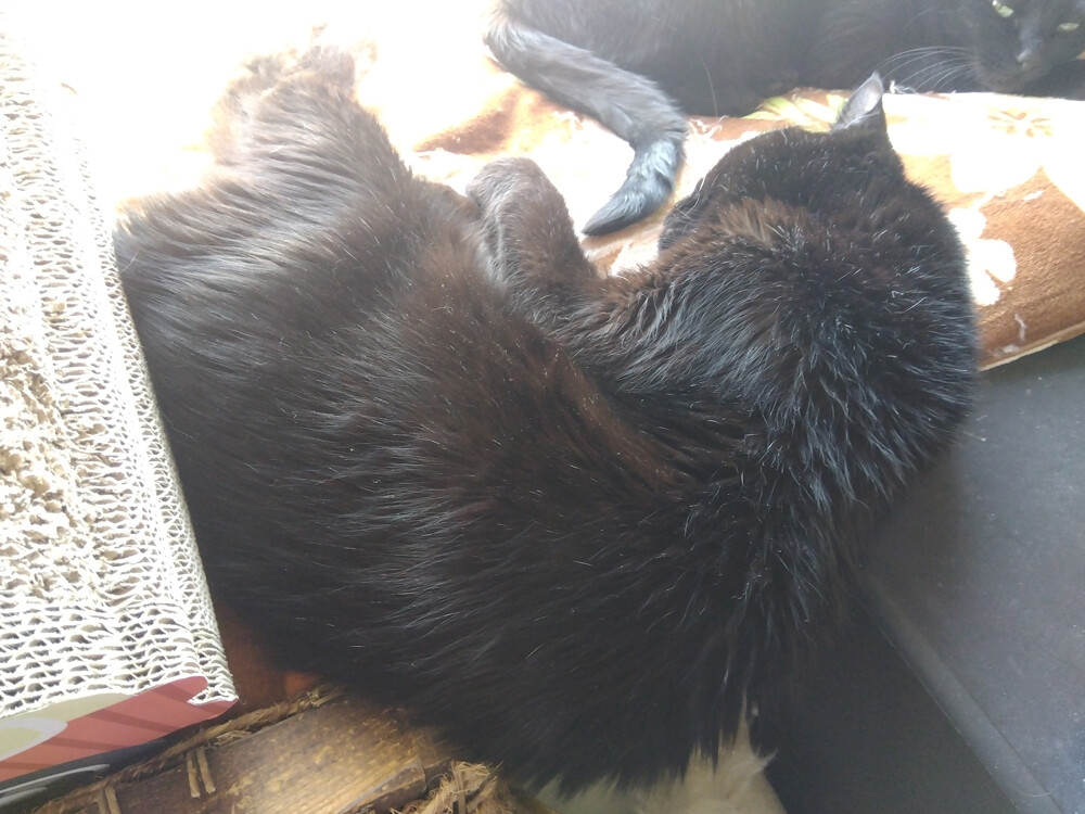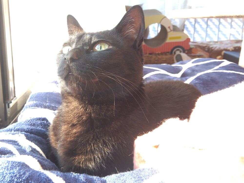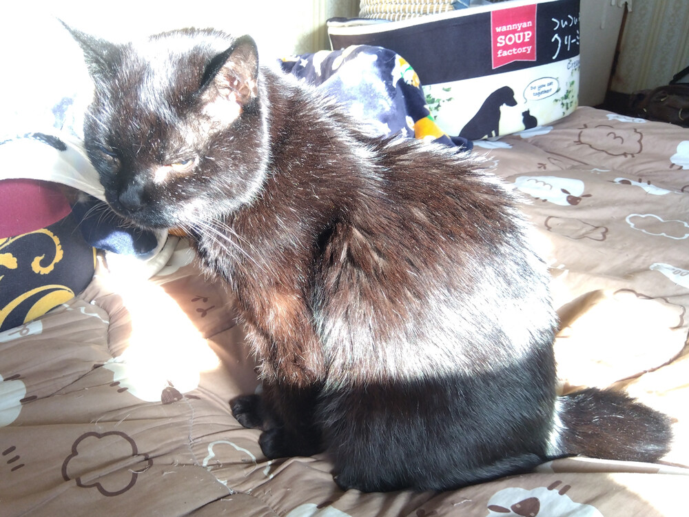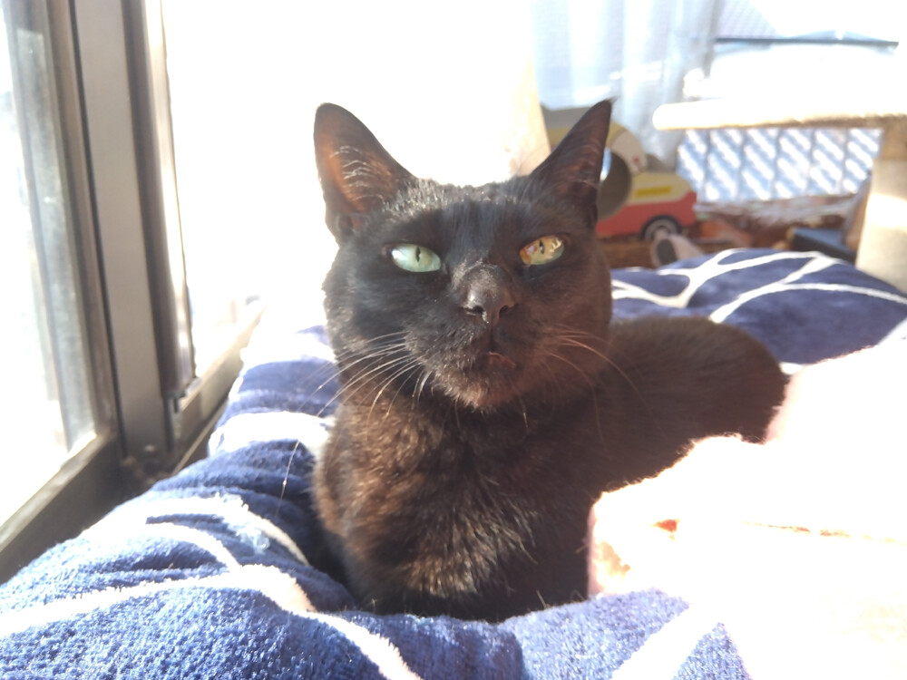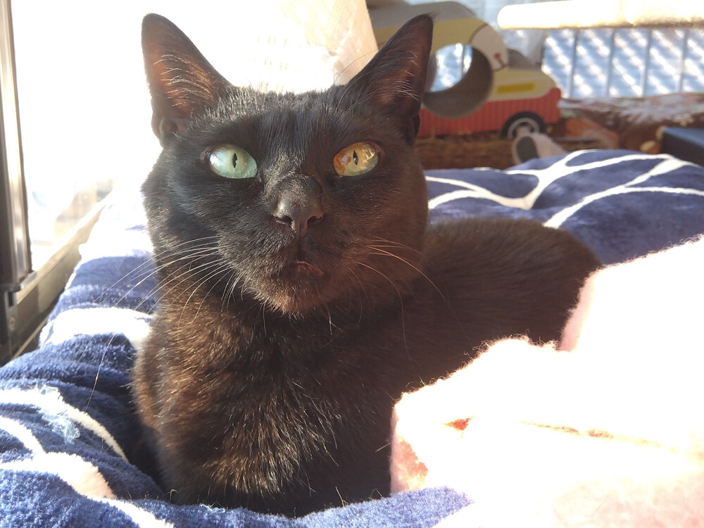 のらみゃん早くも夏日かも? 2026年04月11日 カテゴリ:のら3ゃん 今日は、27℃予報が出てます。昨晩も、寝る時間までは窓を開けていましたし、7時前から、だいぶ暖かです。もう、熱中症を意識しないといけない季節なんですねぇ。くろねえさんは二度目の朝ご飯を食べて…バスで、作業部屋に到着。早速、日向に移動して…固まってます。あかるちゃんは、南の窓辺で…ボーっとお昼寝してますがあら、窓の方を向いちゃった。のんびり気ままにしたいんですね。扇風機とか、出した方が良いかも…?