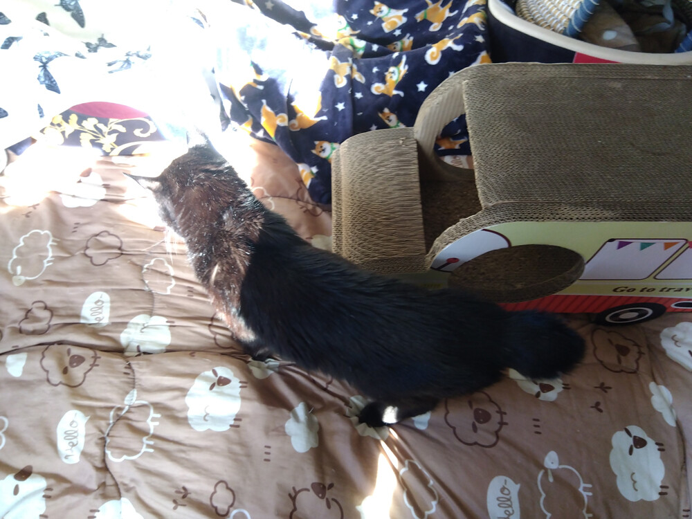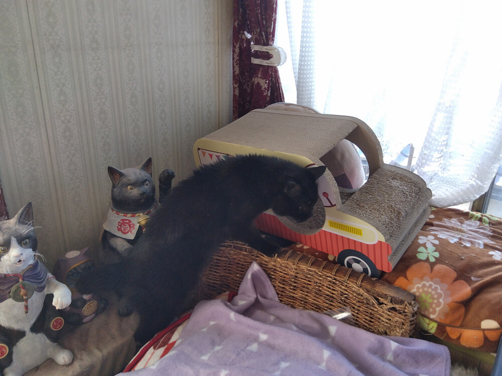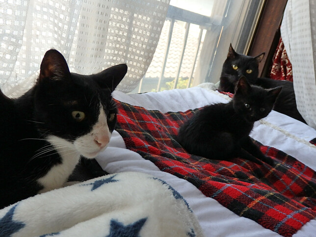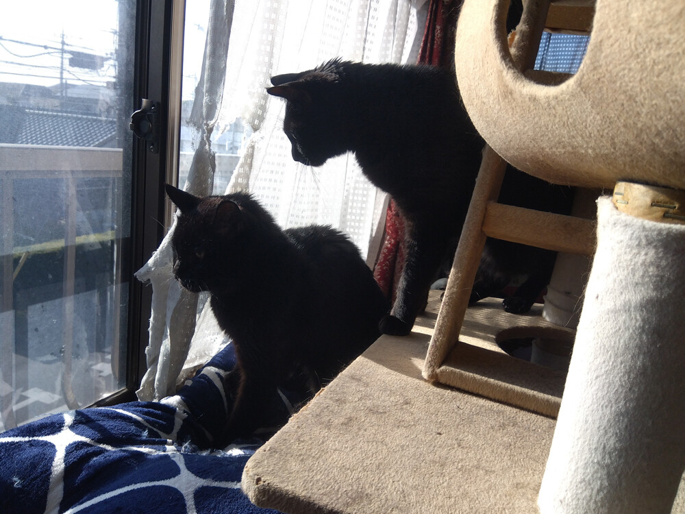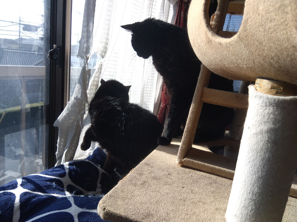 のらみゃん気分で場所選び 2026年04月13日 カテゴリ:のら3ゃん 引き続き、天気のいい群馬。ねこさんたちの活動開始時刻が順調に早まっています。朝のご飯後の、黒女子おふたりは…早速、作業部屋南の窓辺へ。あ、でもくろねえさんは…東の窓辺も確認したい模様。あかるちゃんも、あとをついていきますが…うーん…ちょっと違うかも。くろねえさん東の窓辺を経由して…ベッドの上の日向に落ち着きました。気分によって場所を変えたいね。