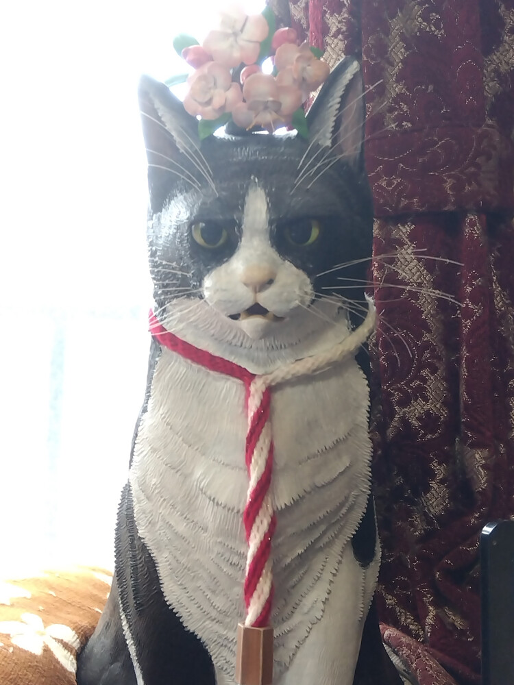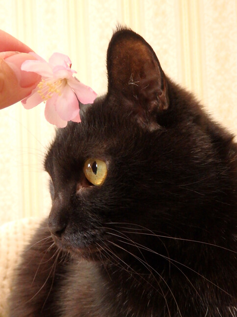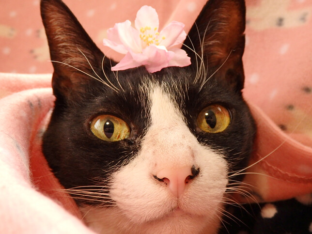 あかるちゃん記念日! 2026年04月10日 カテゴリ:のら3ゃん 今日は、あかるちゃん記念日!あかるちゃんは、2021年4月10日にうちに来てくれました。 もう5歳…というかまだ5歳だったっけ!?…という印象です。10年以上一緒にいるんじゃないかと思える慣れっぷりなんです。やはり、わたしからだけでなく…おふたりの先住ねこさんからねこのルールを教わったのが大きいんだと思います。人間だけで教えられることには限界がありますもんね。あかるちゃんは、「紅桜」と書いて「あかる」と読みます。名前の元になった…八重桜、今年はまだ花が咲き始めたばかり。2021年の春は、とっても暖かくて3月中に、染井吉野の花がすべて散っちゃったくらいだったんです。なので、八重桜も咲くのがだいぶ早かったです。どちらかというと、今年の方が通常のペース。一週間くらいしたらまた観に行ってみようと思います。…それはそうと。うちのねこさんたちは…しろくろさんも…くろねえさんも、うちの庭の花かいどうを頭に載せた写真を撮影しています。幸いにも、今年はまだ花かいどうが咲いているので花をひとつ頂いて、あかるちゃんの頭に載せようとしたのですが…あーーーー一瞬で、やっつけられました。女の子だけど、まだお花には興味が持てないようで。とはいえ、先住のおふたりが写真撮影に成功したのは、しろくろさんが、9歳くろねえさんが、10歳のころ。あかるちゃんは、まだ5歳だからもう少し落ち着いたら撮影できるようになるんでしょう。毎年、挑戦します。おめでたい日なので…今日は、しろくろさん彫刻の鈴緒の首輪が、紅白でした。