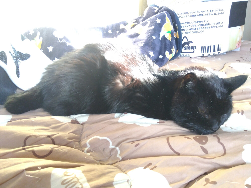 のらみゃん毎日山椒魚 2026年04月08日 カテゴリ:のら3ゃん 今日は、親戚の葬儀がありますので朝からバタバタしそうです。SNSの返信など、滞ると思いますがどうかご了承くださいませ。昨日は、夕方から強風が吹き荒れて夜になったら、さらに大変なことに。雨戸を閉めて寝ました。今朝は、良く晴れて風も収まったので、なによりです。朝ご飯を食べ終わった黒女子おふたりは、作業部屋へ。くろねえさんは今日も…ベッドで、山椒魚。春の日向でこの感じ気持ちいいんだろうなぁ。あかるちゃんは、東の窓辺です。電線に留まった鳥を眺めながら…写真撮影の相手までしてくれてありがとうございます。ぽかぽかになってきた。